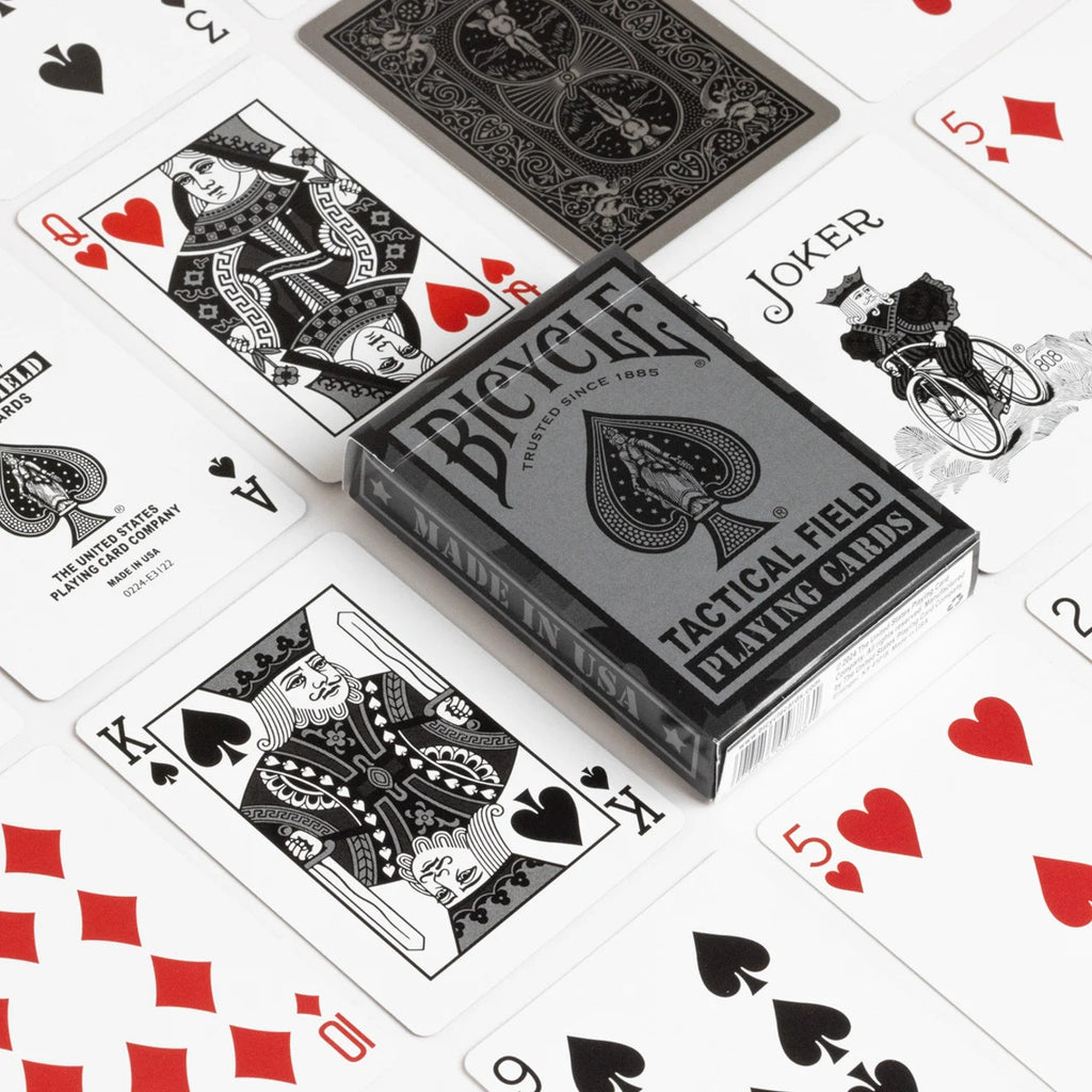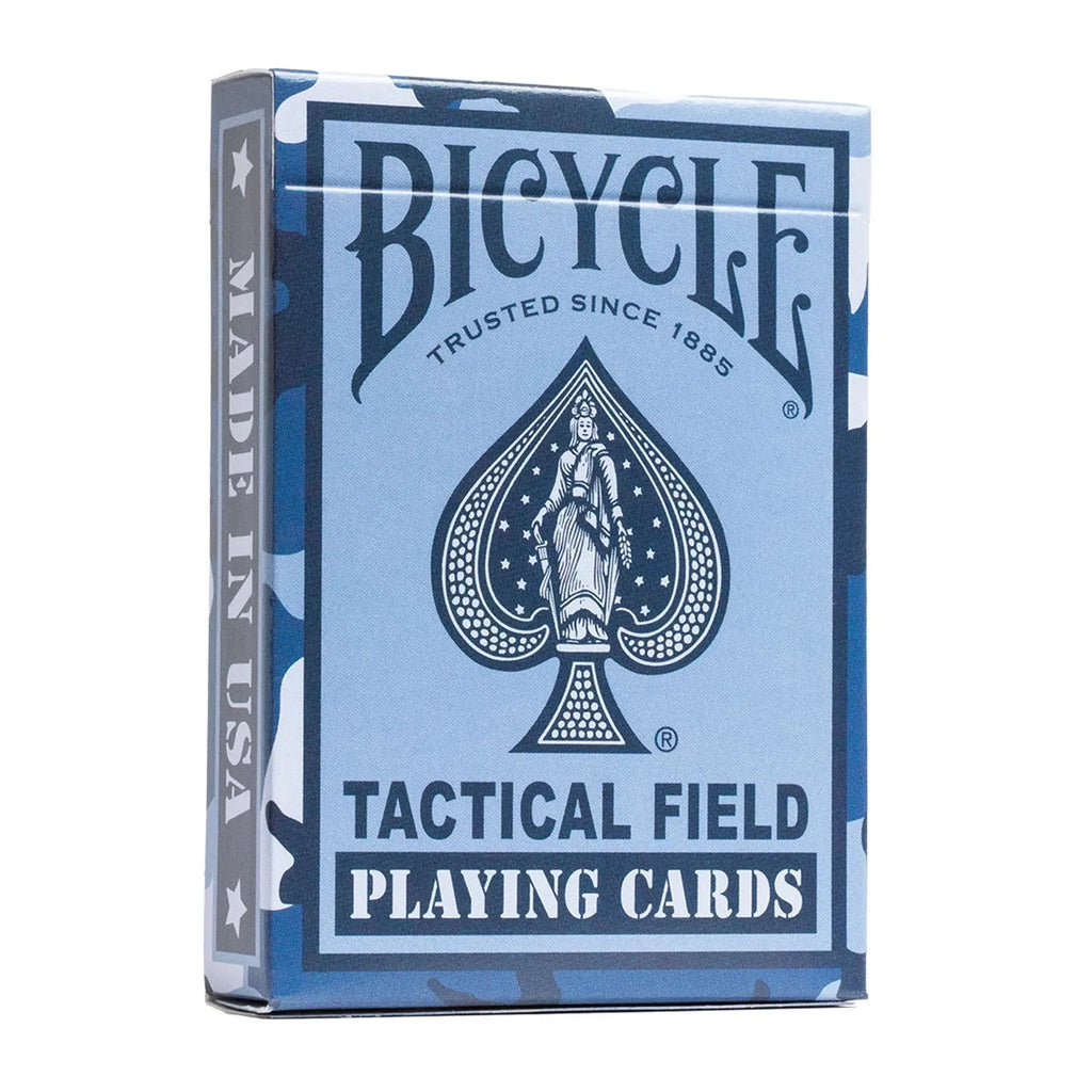 With the Bicycle Tactical Field playing card deck, your opponent will never see your next hand coming! Printed in highly specialized, muted camouflaged colors, these cards are perfect for military or covert situations. Available in Navy Blue or Special Ops Black colors.