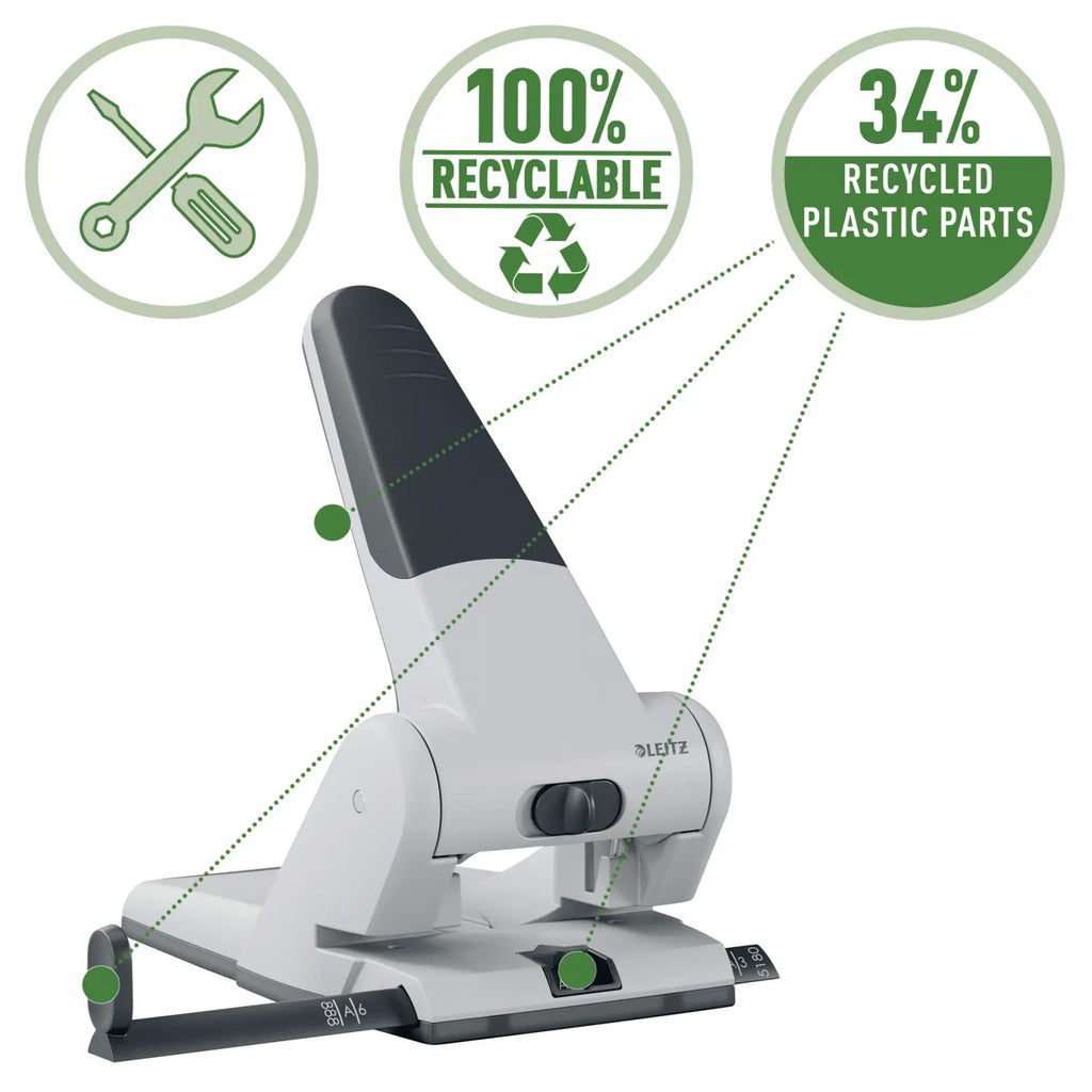 - تتيح تقنية و التصميم تثقيب كميات كبيرة من الورق دون عناء