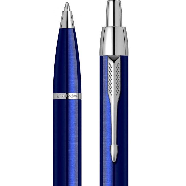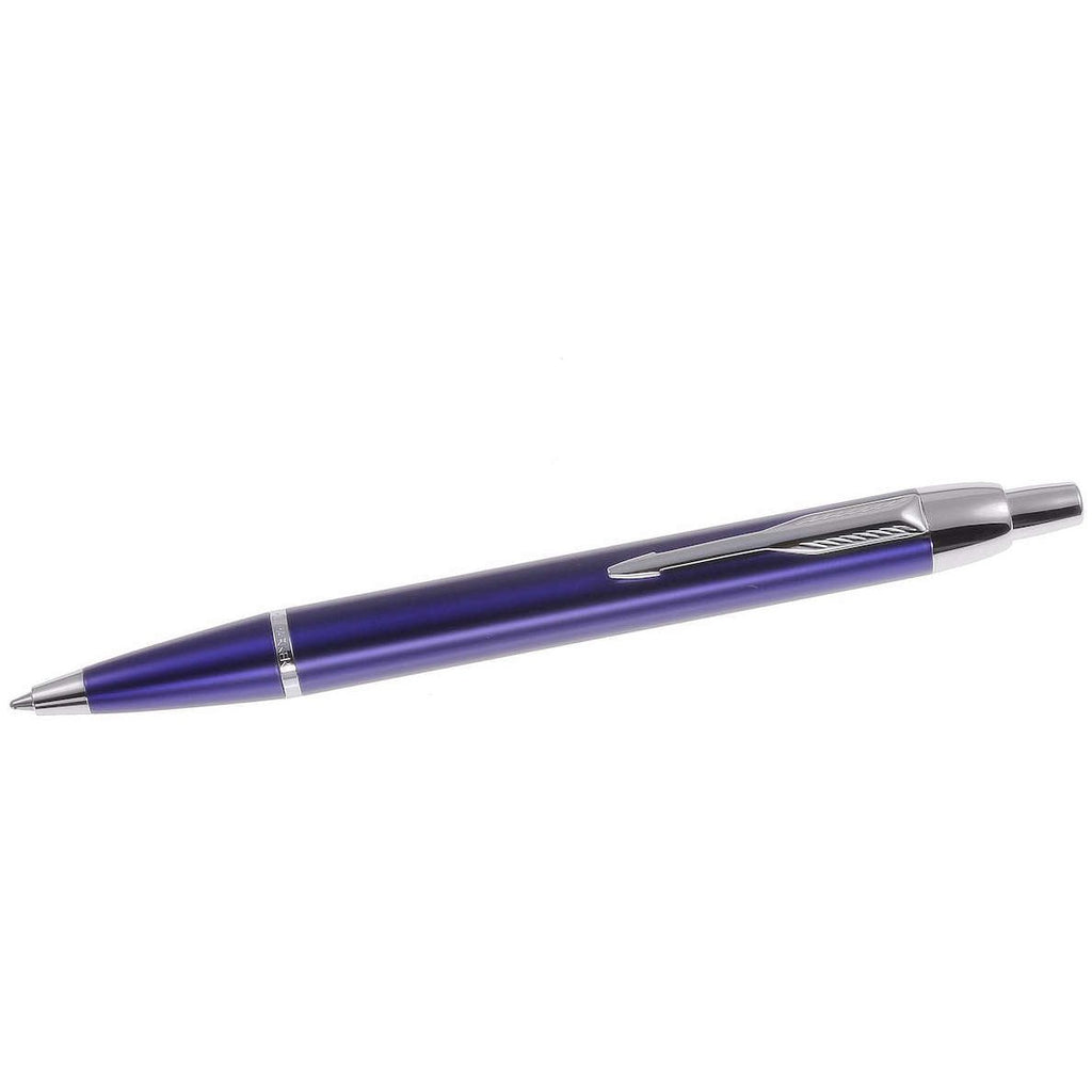 - Parker IM Retractable Ballpoint Pen, lacquered Glossy Blue Metal , Chrome metal finish & Shiny Chrome trims