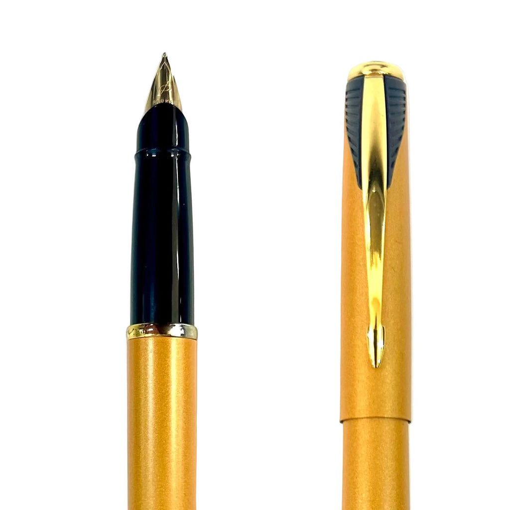 • The radiant yellow Parker fountain pen has a 14K gold plated trim and a 23k gold plated MEDIUM nib.