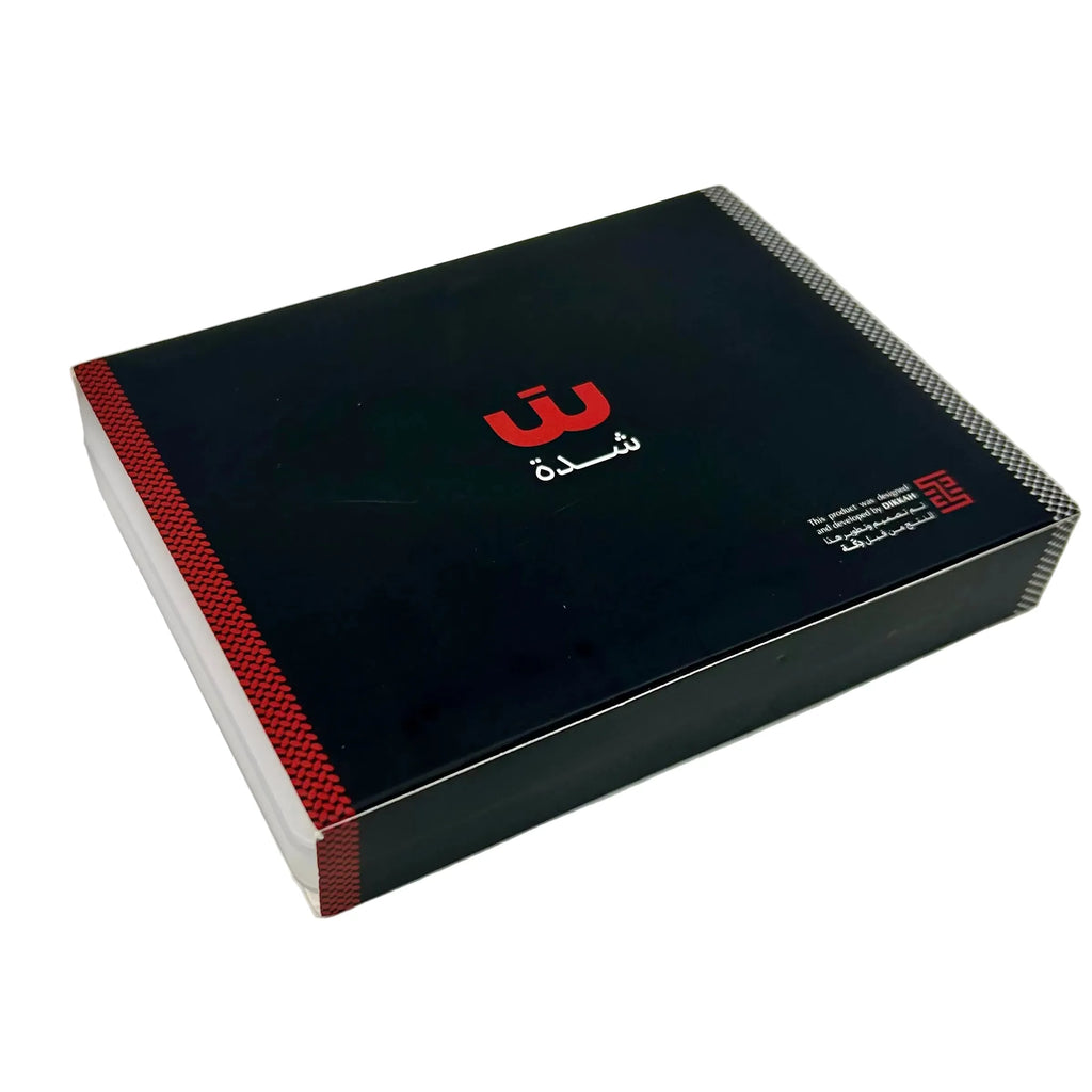 At “Dikkeh,” we believe that every detail in the product plays a role in creating a unique experience, from the logo and colors to the design of game boxes and playing cards. We take pride in using the Arabic language with all its beauty and authenticity in our designs, and we always strive to preserve the Arab identity in everything we offer.